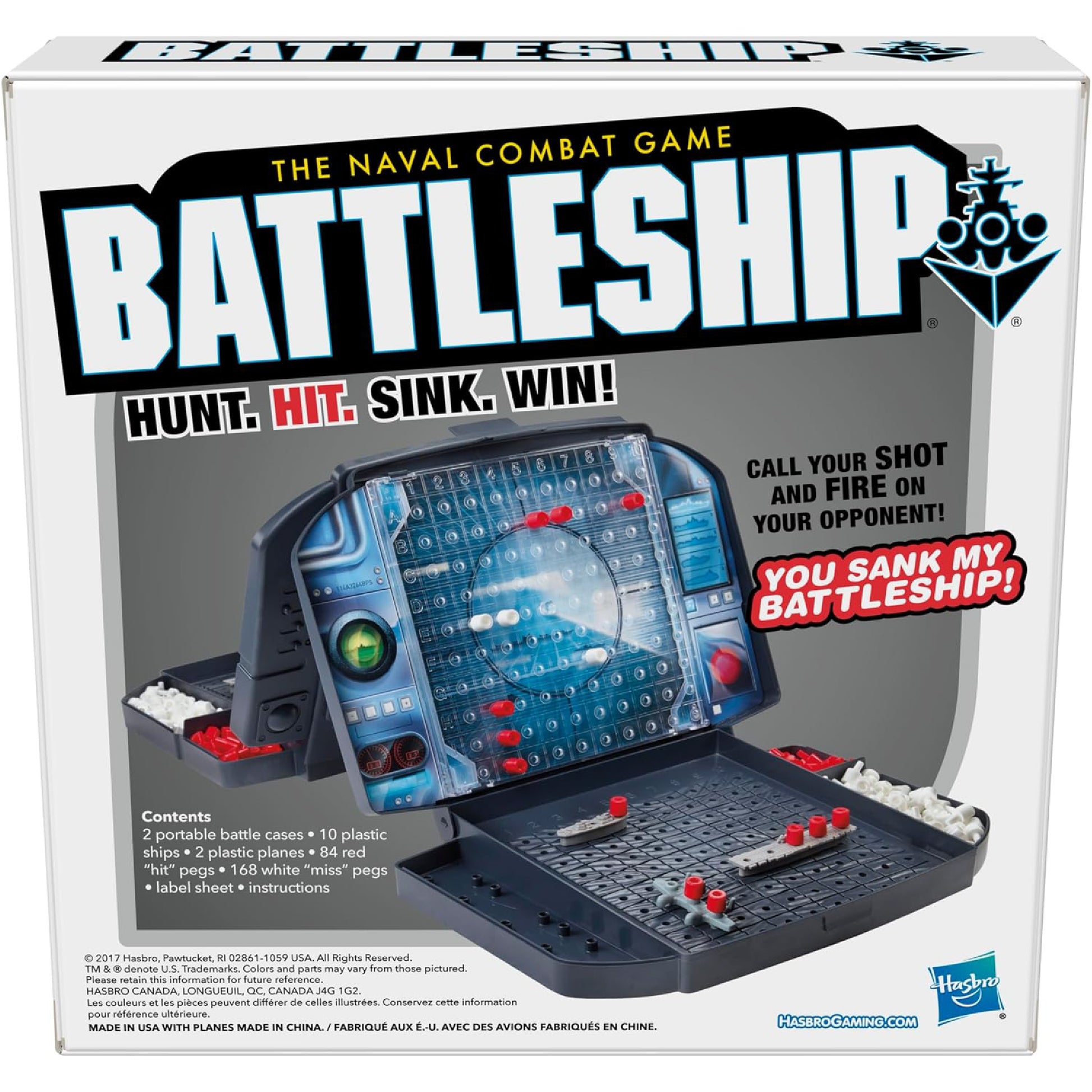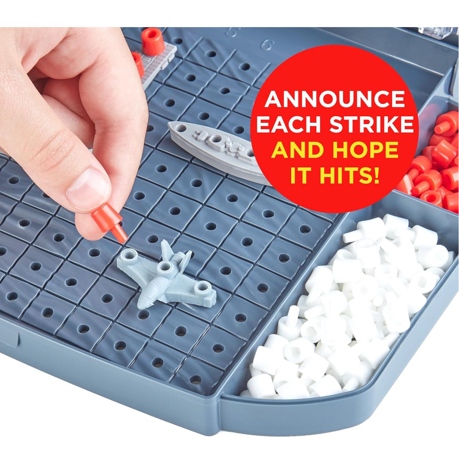 - Contenido del producto: Incluye 2 estuches de batalla portátiles, 10 naves de plástico, 2 aviones de plástico, 84 clavijas de "golpe" rojas, 168 clavijas de "falta" blancas, hoja de etiquetas e instrucciones