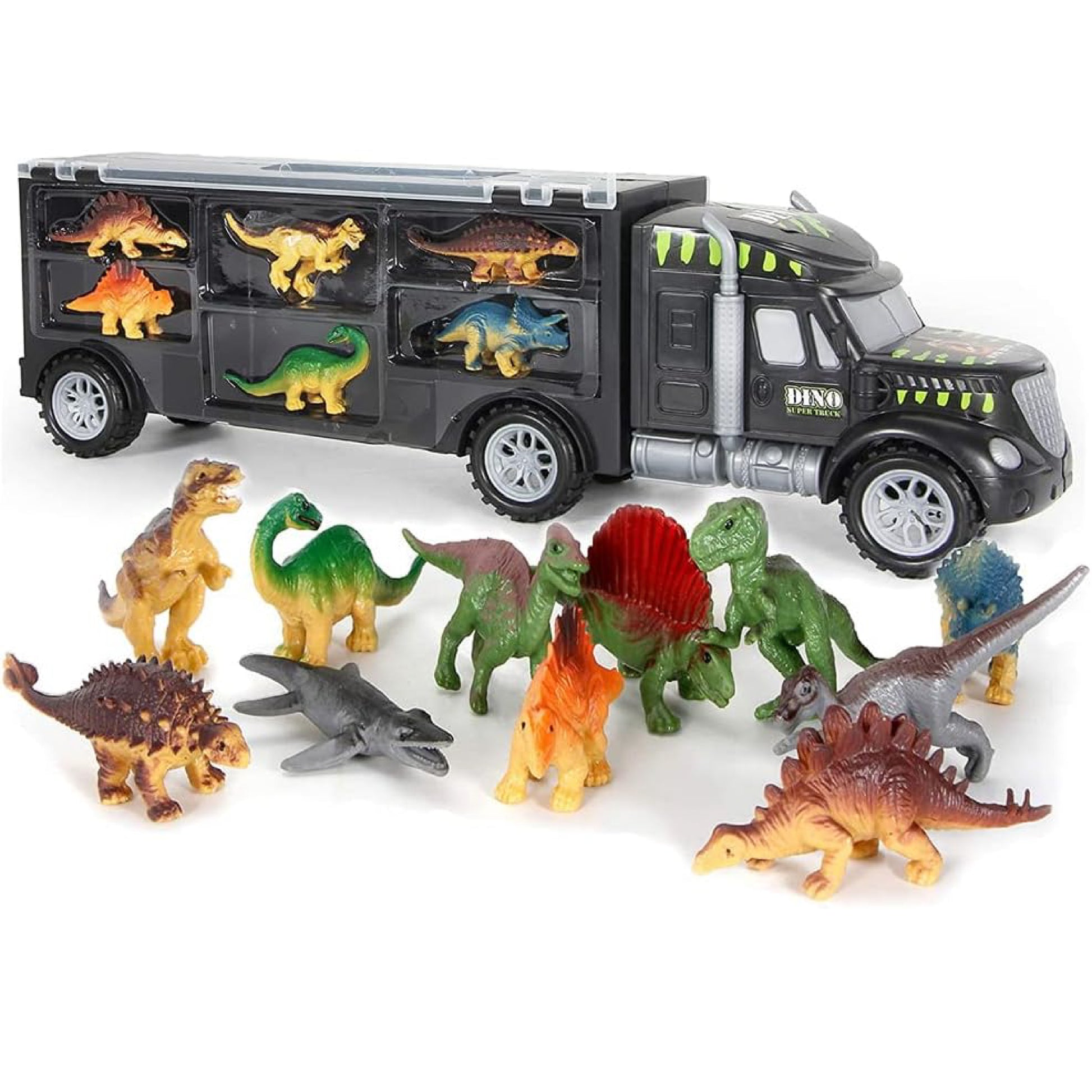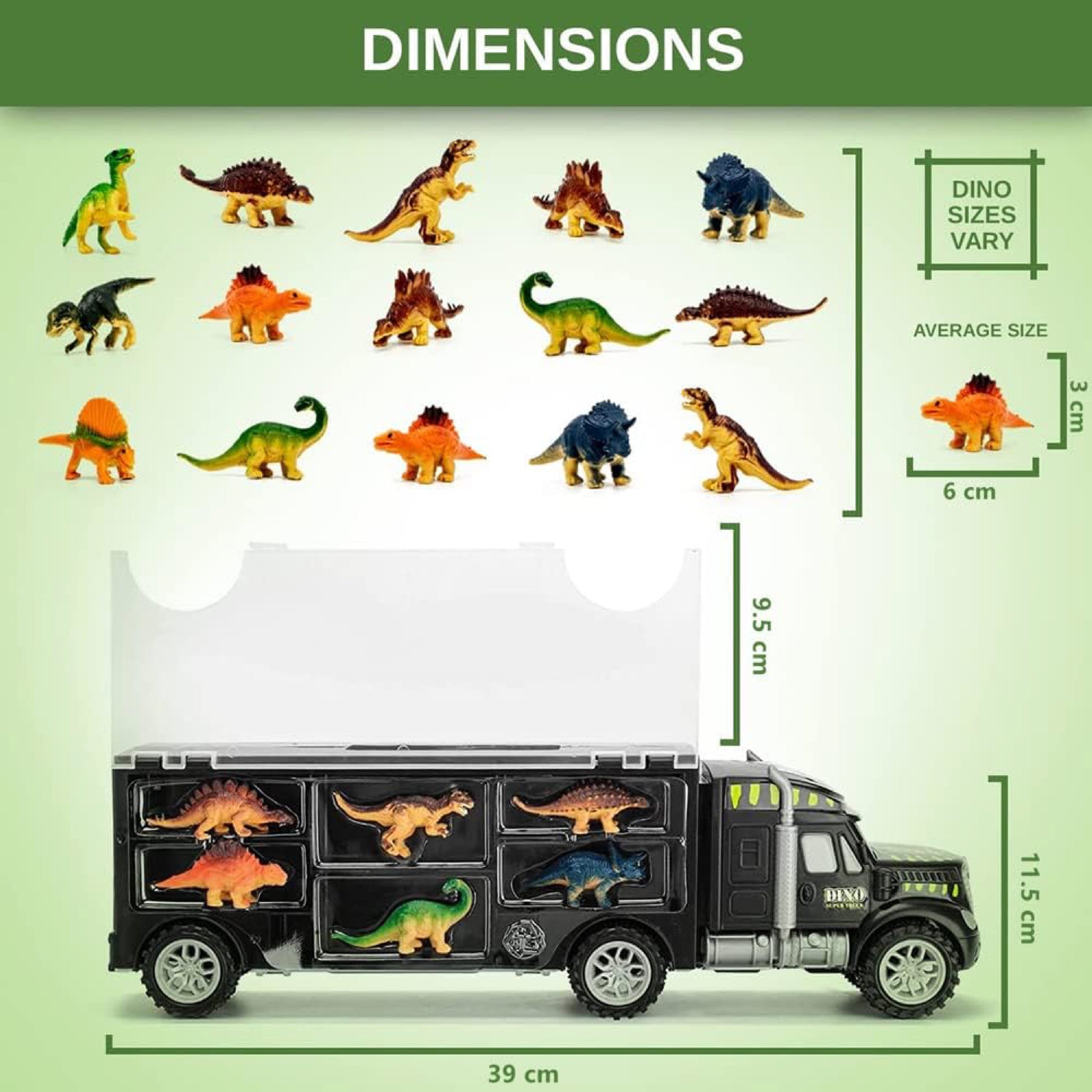 - Incluye 15 mini dinosaurios y un camión