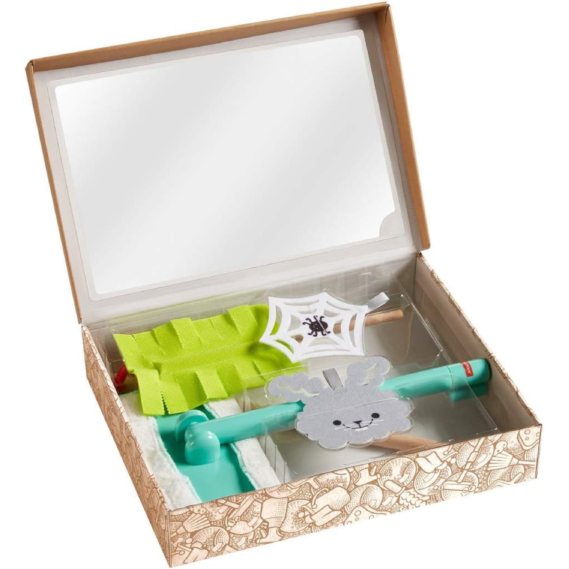 - Contenido: Incluye escoba y plumero con "conejito de polvo" y telaraña de fantasía para una limpieza divertida