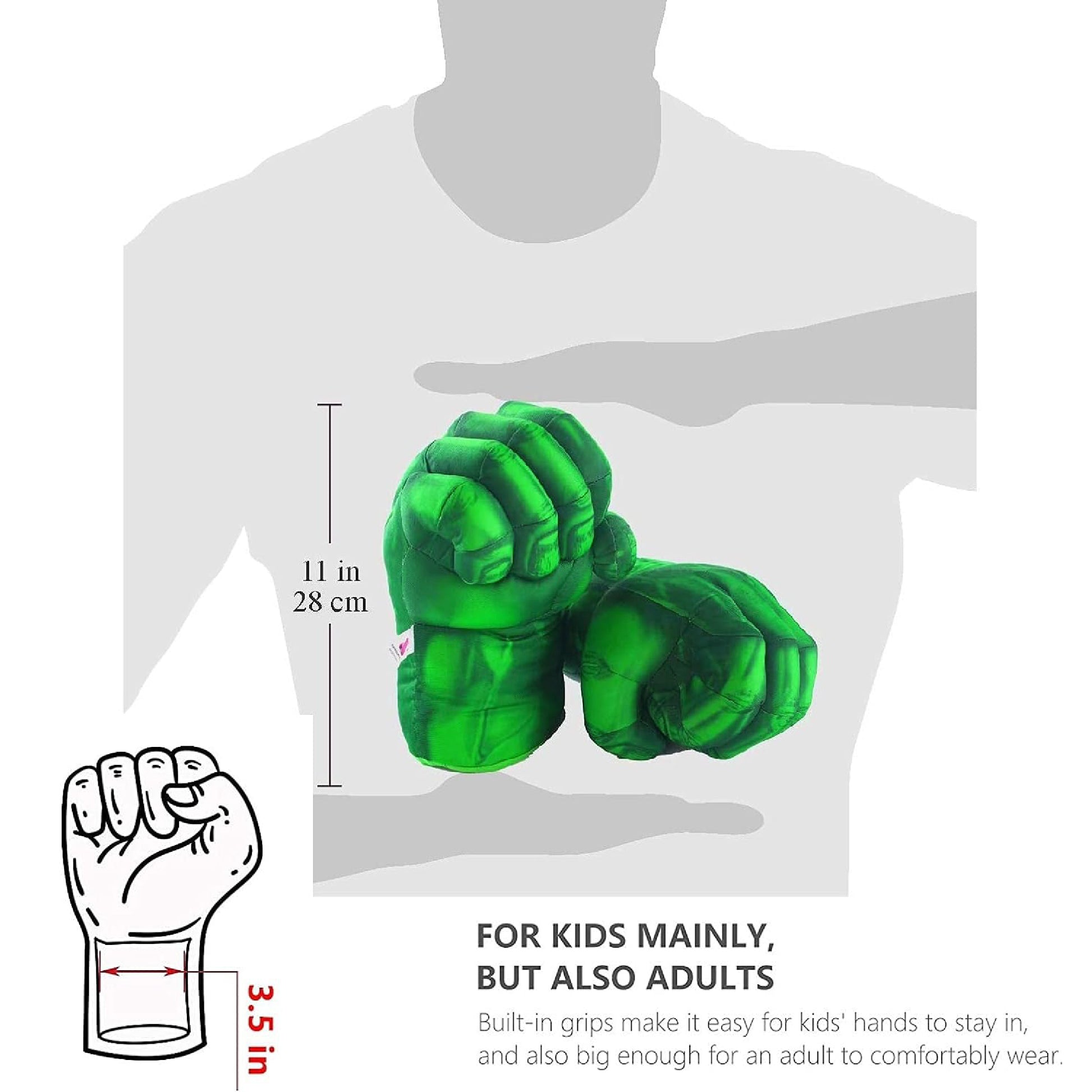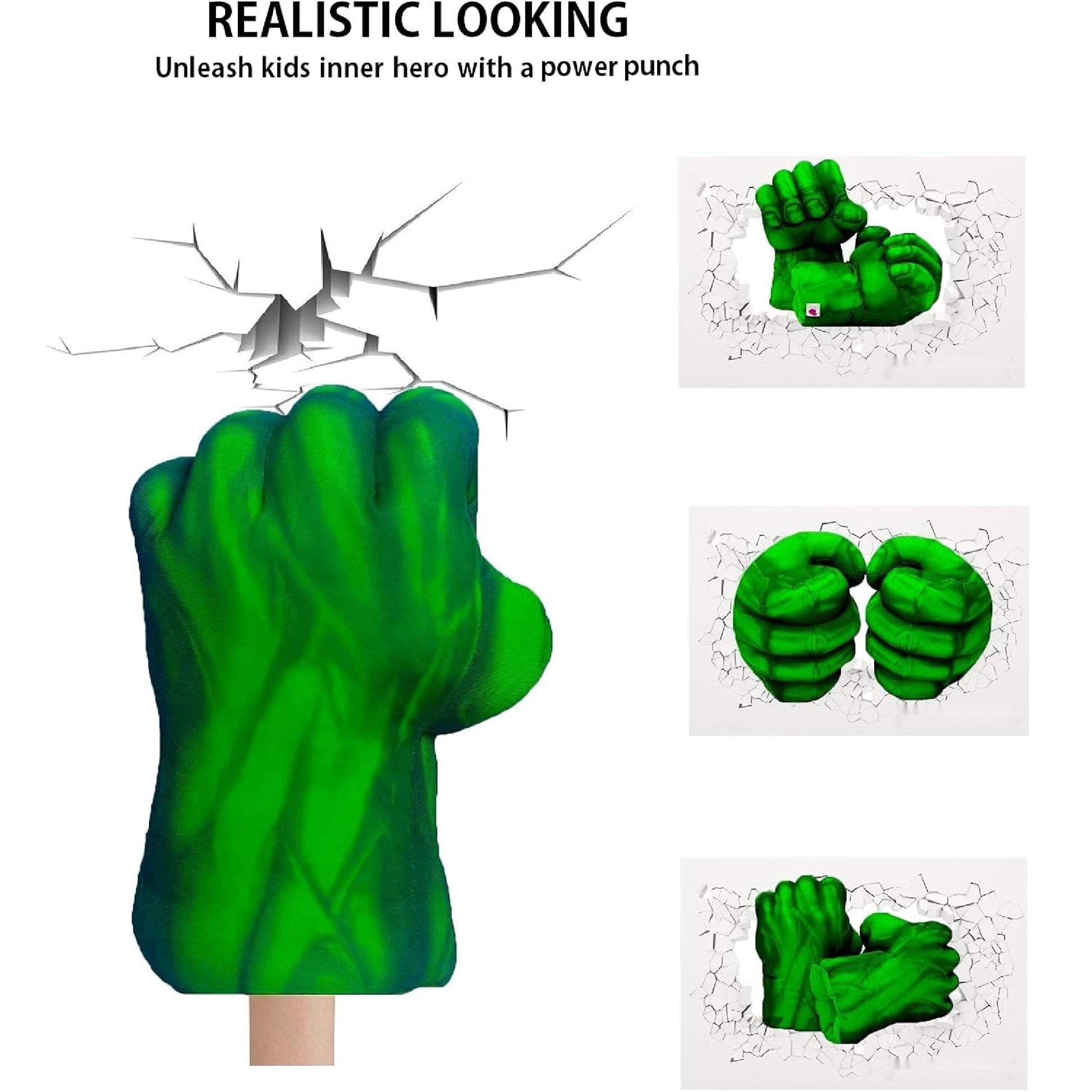 - Incluye 2 manos de Hulk.