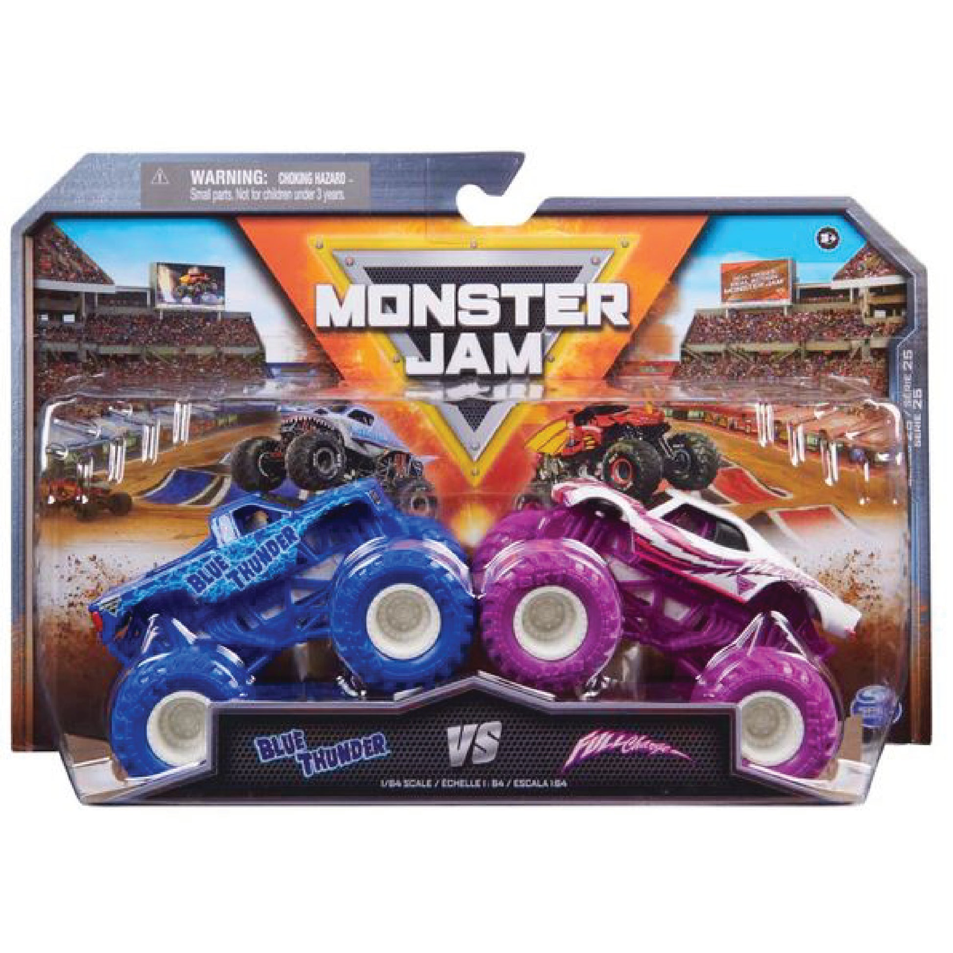 - Dos camiones Monster Jam oficiales: Crea emocionantes enfrentamientos con el pack de 2 vehículos a escala 1:64.
