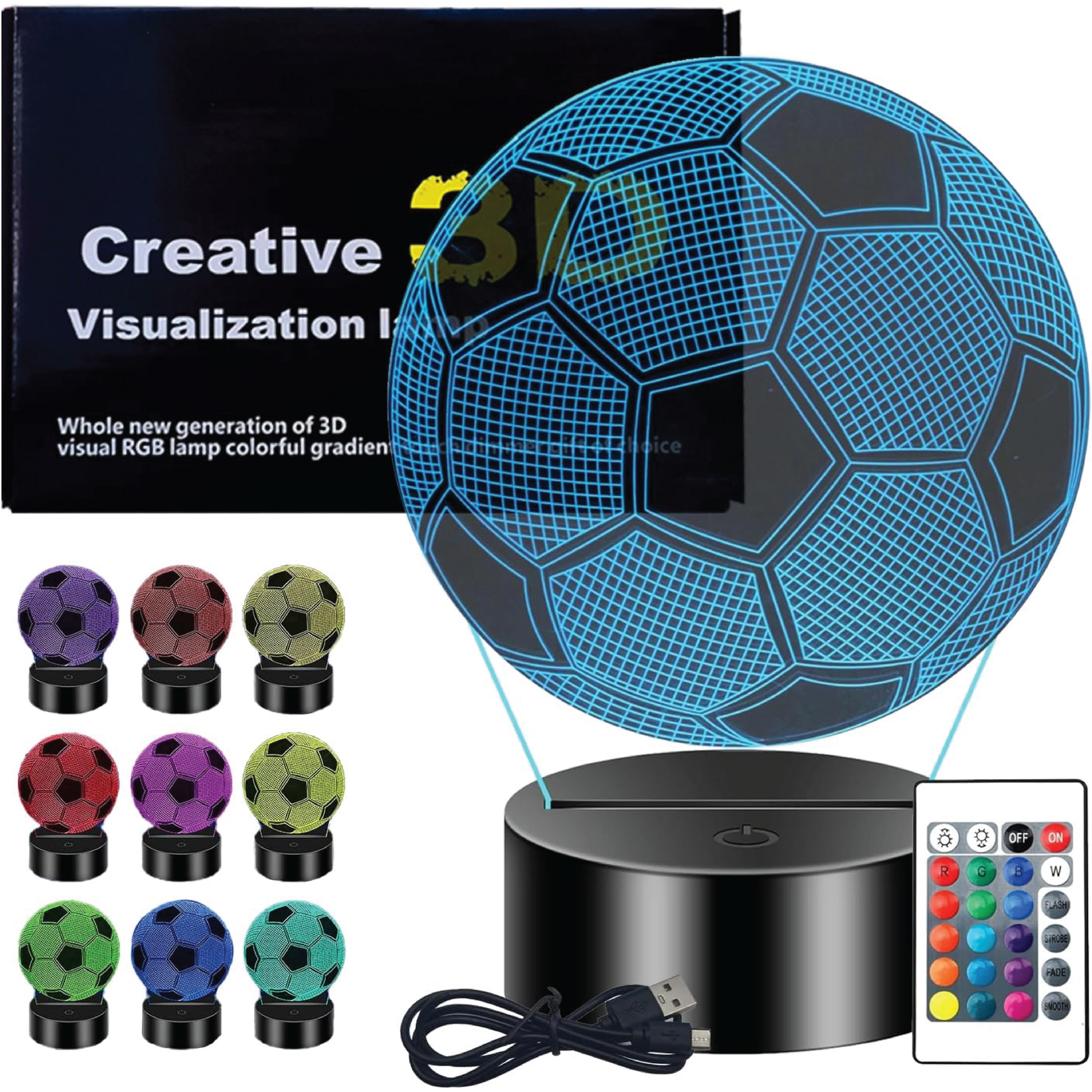 - Luz nocturna de fútbol 3D con 16 colores, control remoto y toque táctil.
