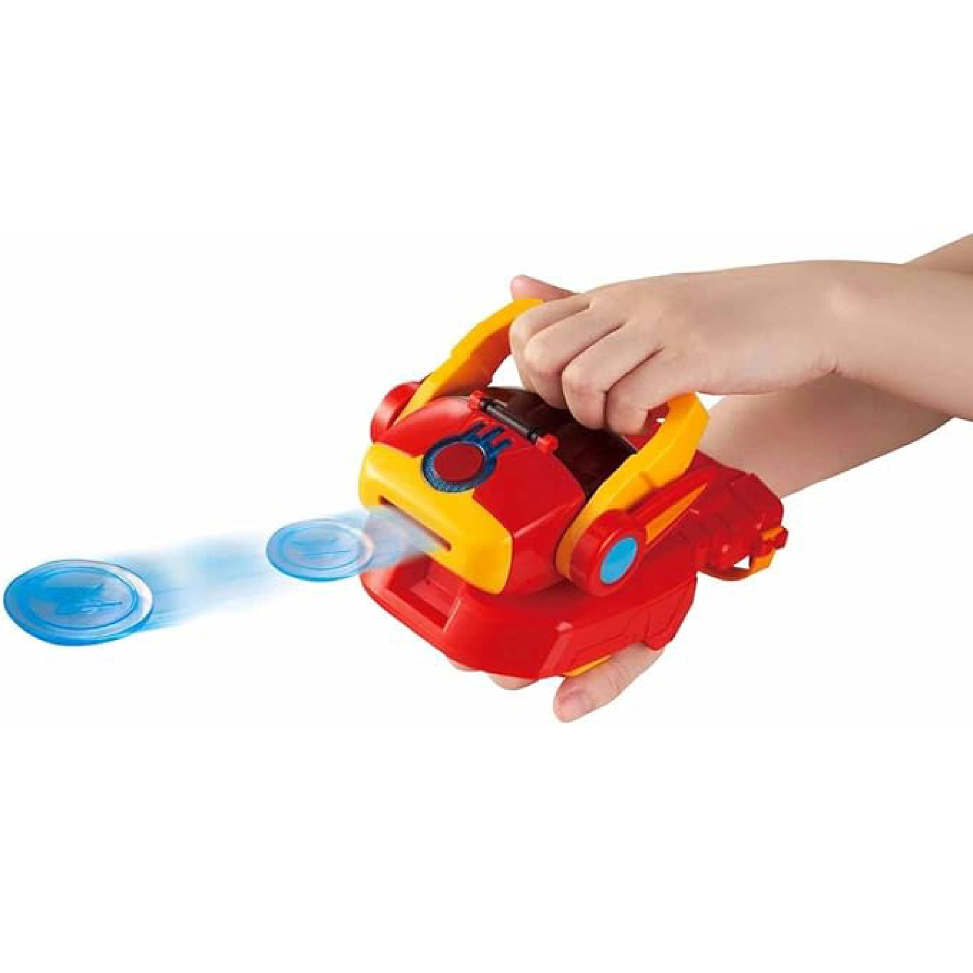 - Colócalo en tu mano y dispara hasta 6 discos, sólo necesitas jalar la banda amarilla hacia atrás y las orejas se moverán