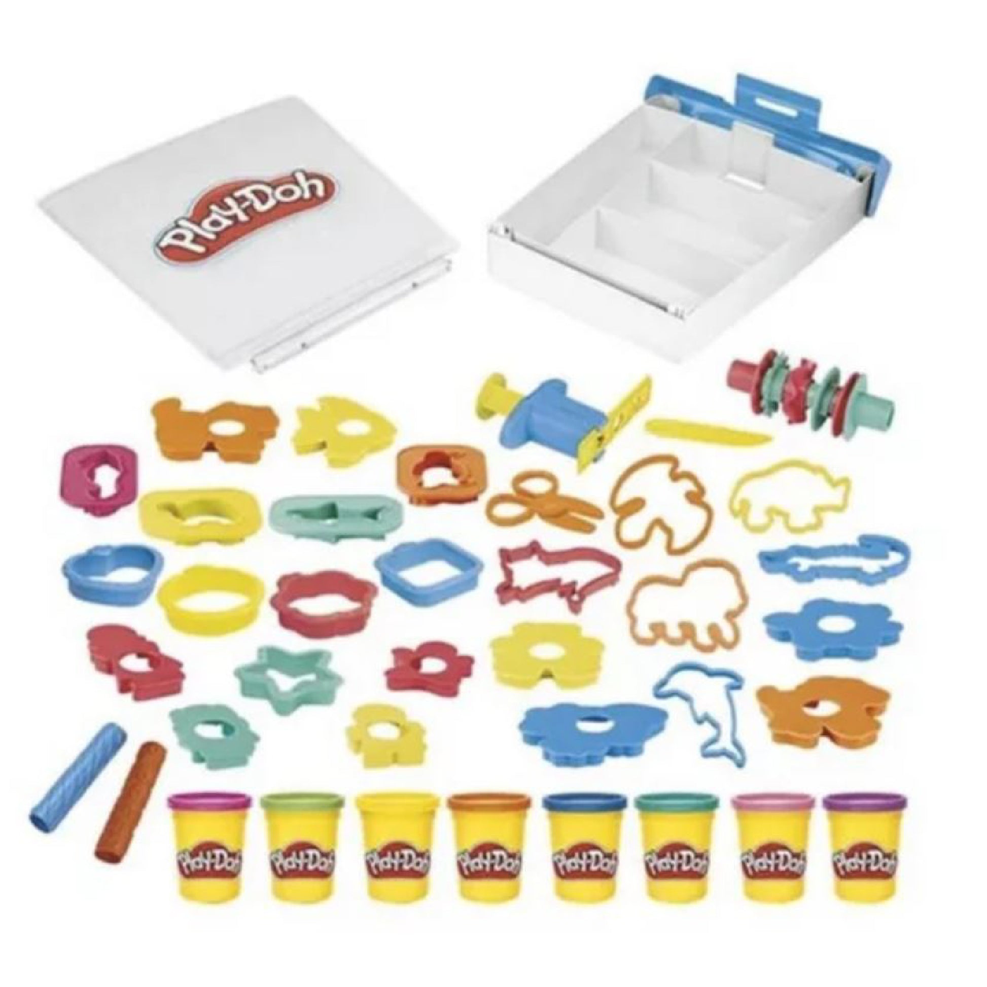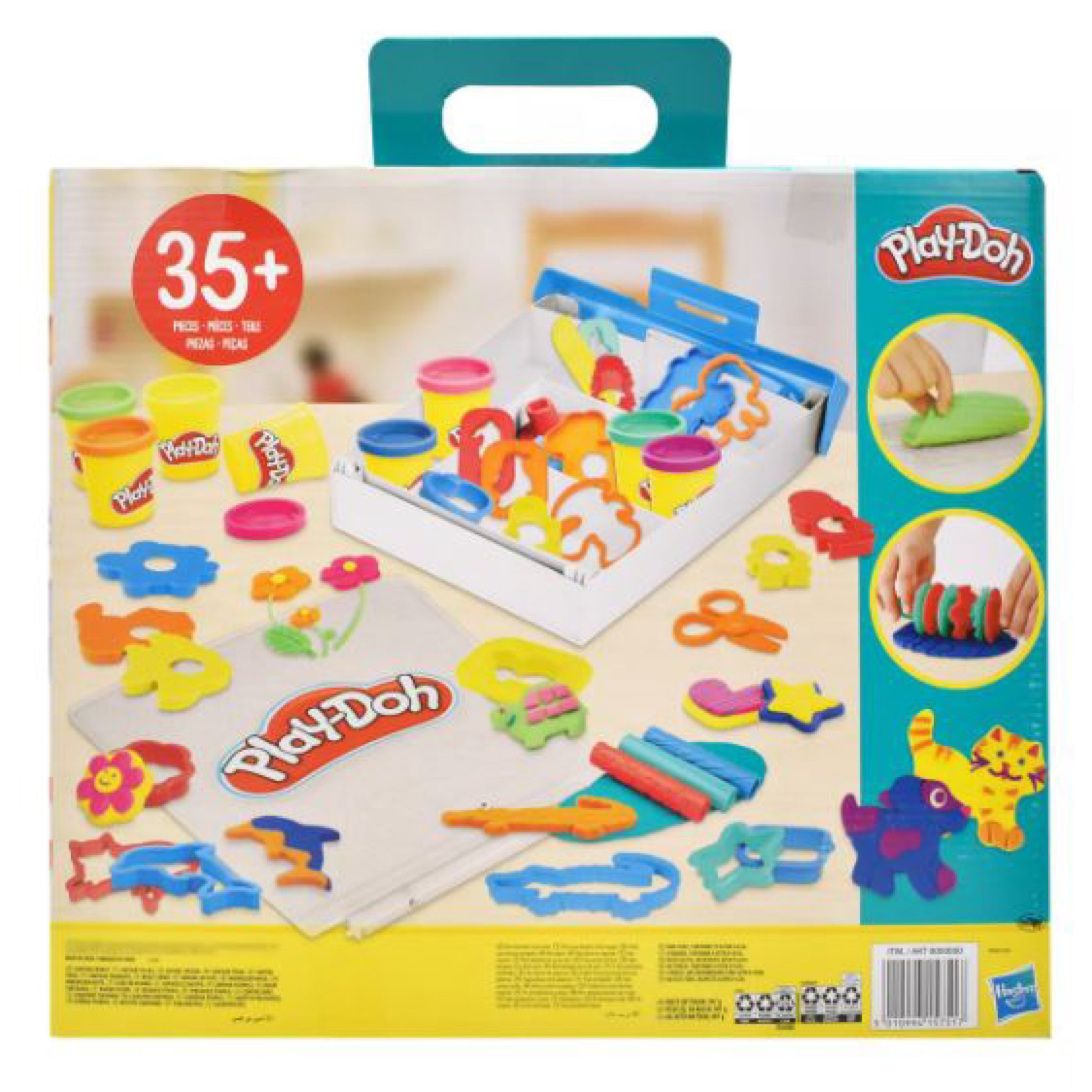 - Contenido: 8 colores Play-Doh, 18 cortadores de animals, 5 cortadores de formas, 4 cortadores de personas, rodilos, cuchillo, tijeras