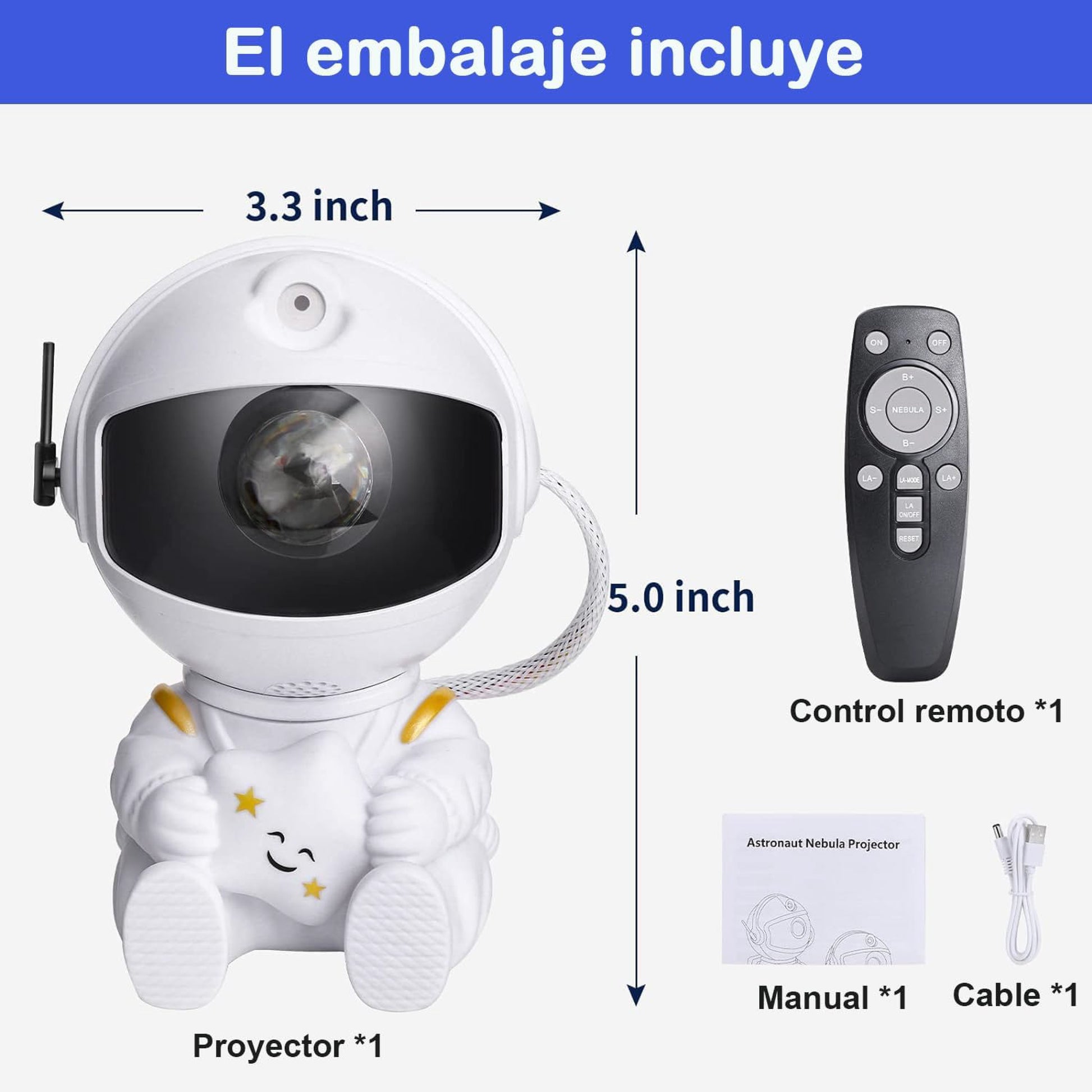- Control remoto incluido y cabeza del astronauta giratoria 360° por imán, permite proyectar en cualquier dirección. Funciona por USB, y es un regalo perfecto para niños o adultos que buscan un ambiente relajante y decorativo.