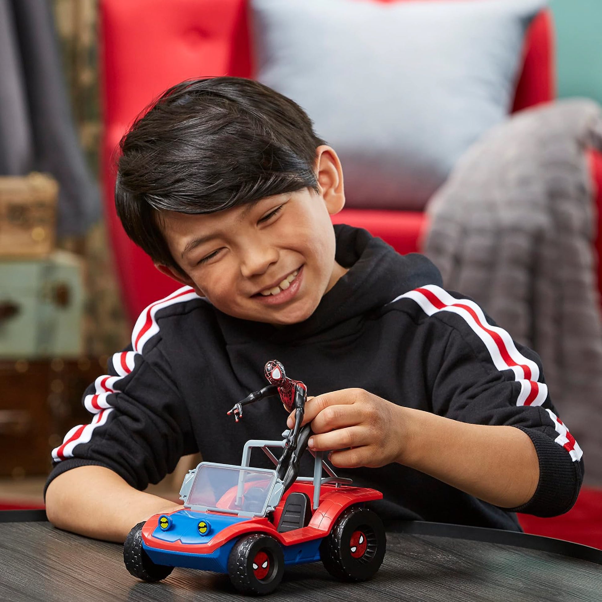 - ¡Miles Morales corre al rescate en su Spider-Mobile, ofreciendo emocionantes aventuras arácnidas para niños y niñas.
