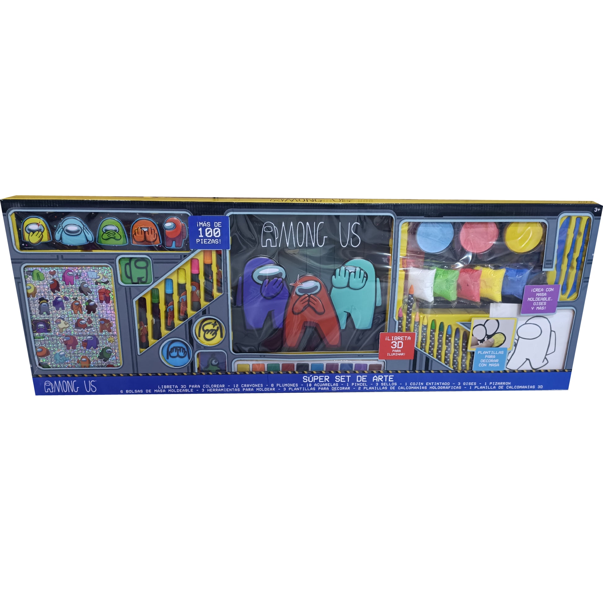 - Contenido: 1 libreta 3D para colorear, 12 crayones, 8 plumones, 10 acuarelas, 1 pincel, 3 sellos, 3 gises, 6 bolsas de masa para moldear, 2 planillas de calcomanias y más