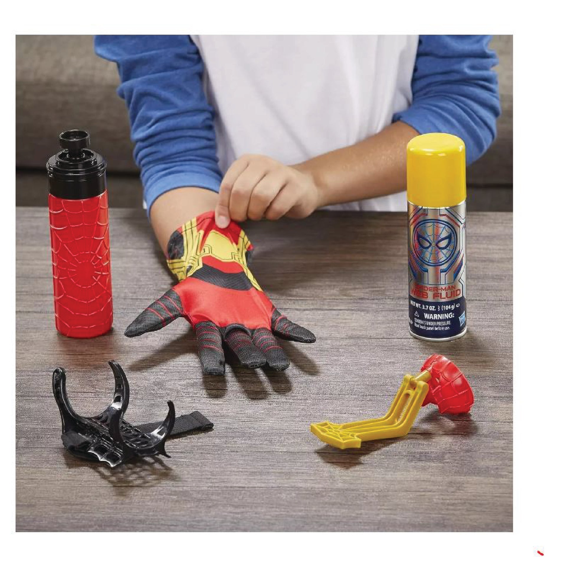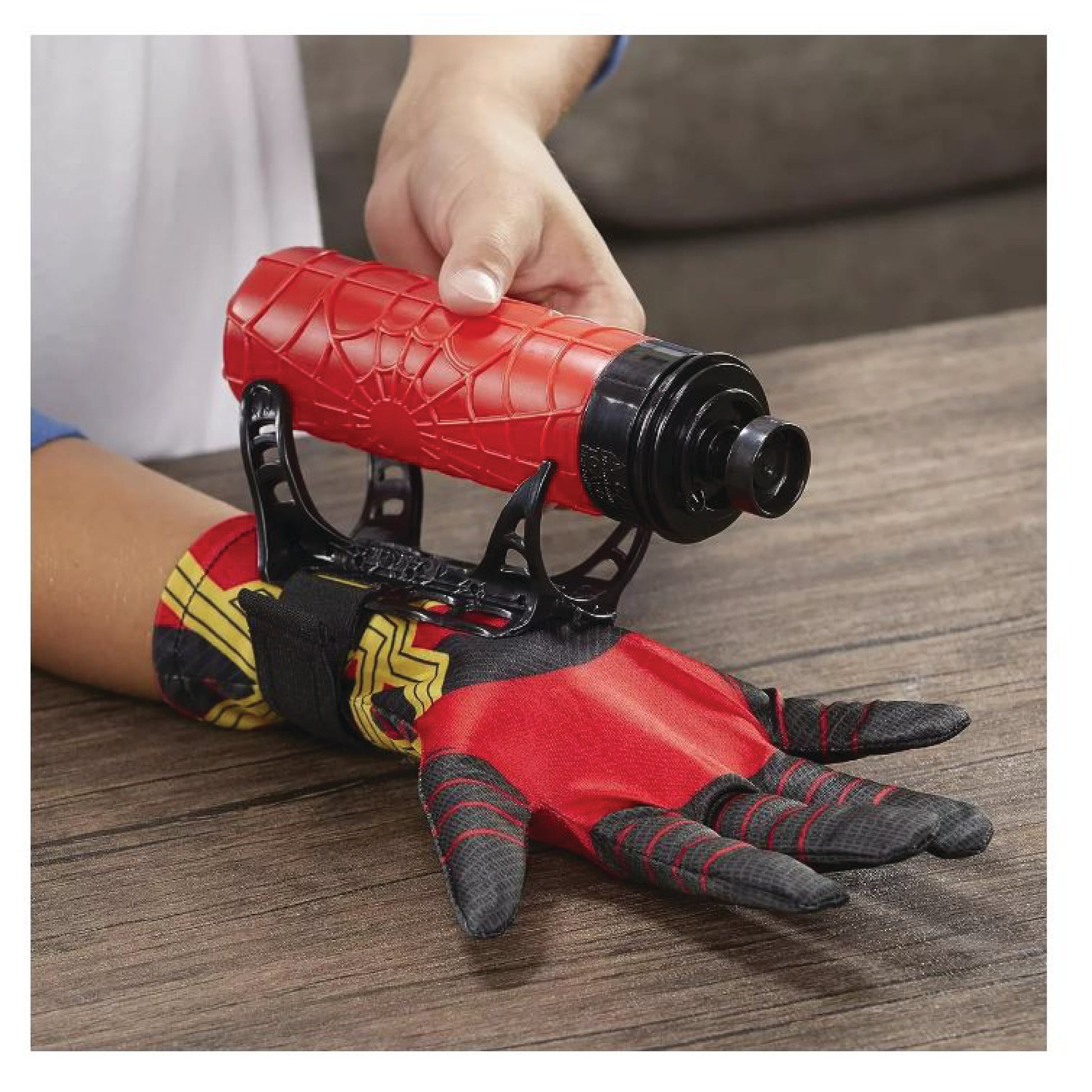 - Pulsera con lanzador de líquido: carga líquido de red o agua para lanzar a los enemigos con esta correa de tela de Spider-Man.