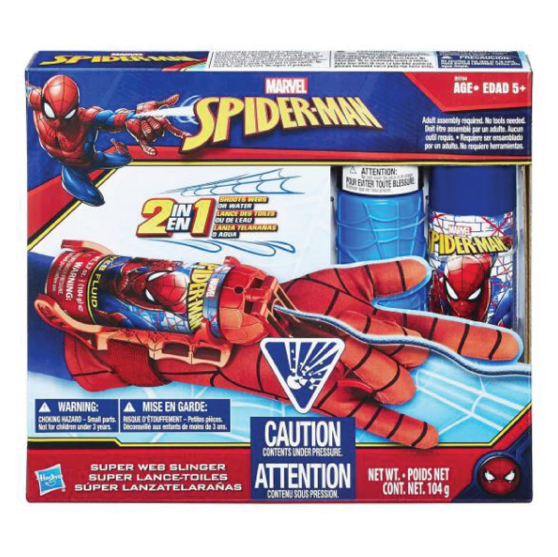 - Pulsera con lanzador de líquido: carga líquido de red o agua para lanzar a los enemigos con esta correa de tela de Spider-Man.