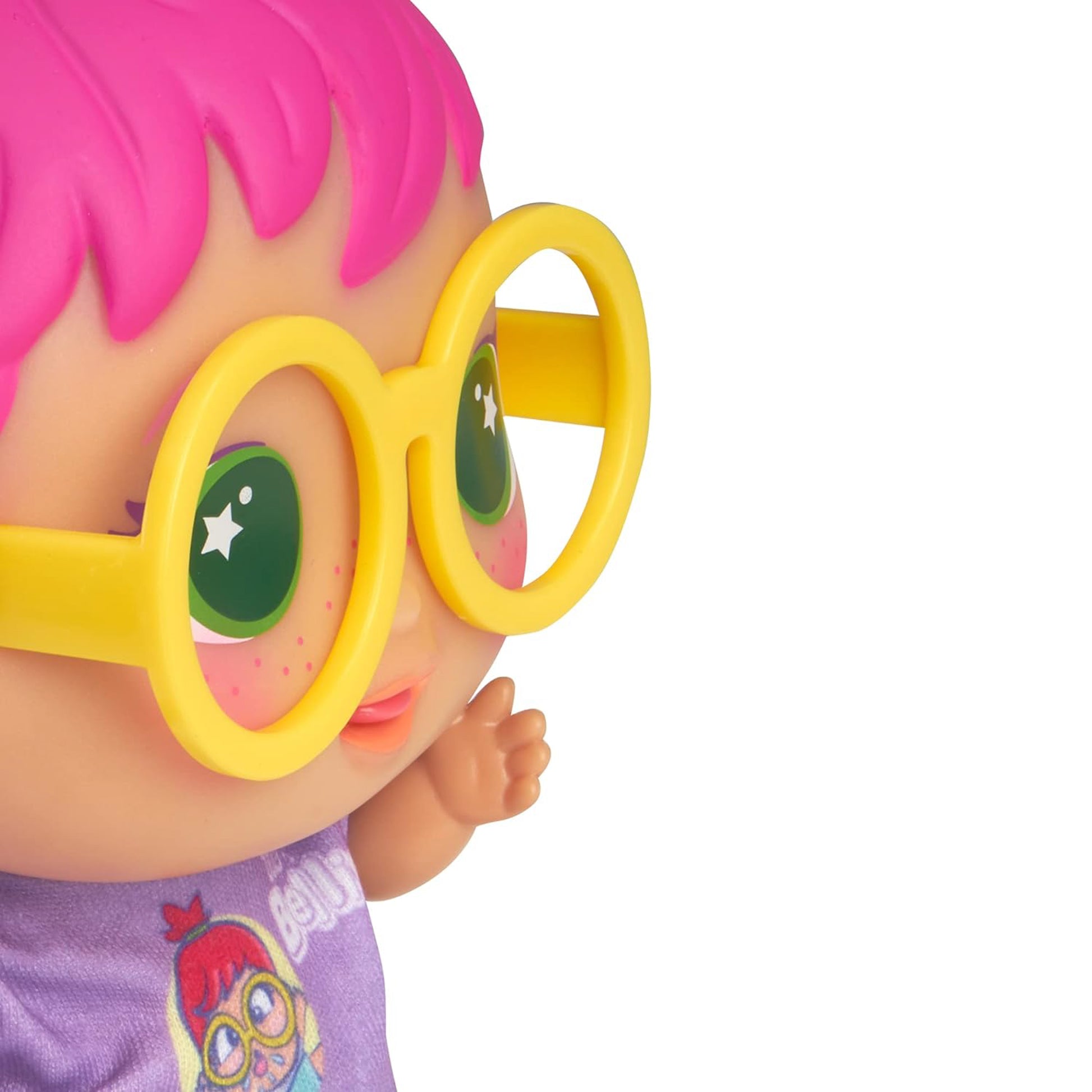 - Agítala y sacará la lengua, agítala de nuevo y la meterá; tiene el pelo rosa, gafas y un atuendo ideal