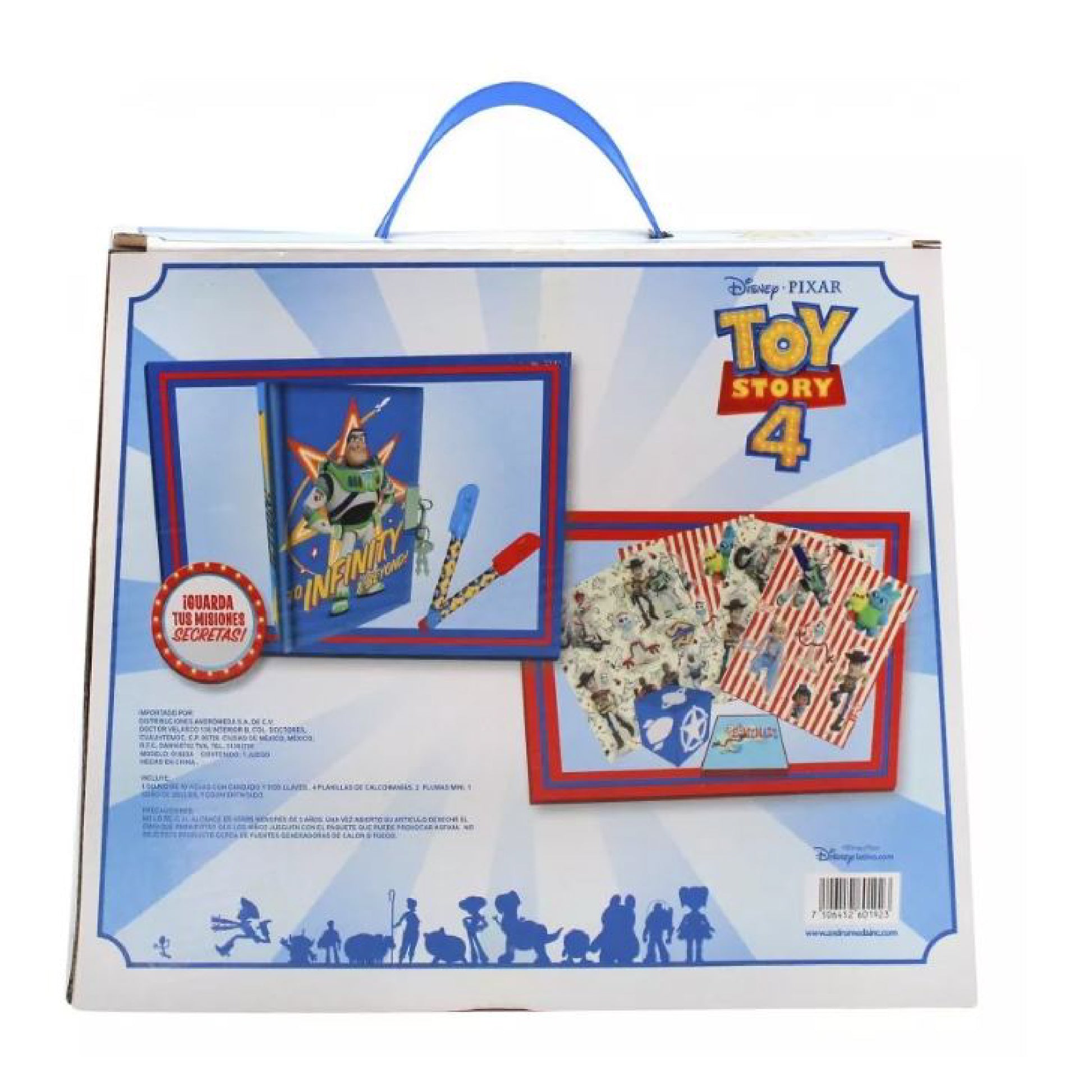 - Contenido: 1 diario con 50 hojas con candado y dos llaves, 4 hojas de calcomanías, 2 plumas mini, 1 cubo de sellos, 1 cojín entintado